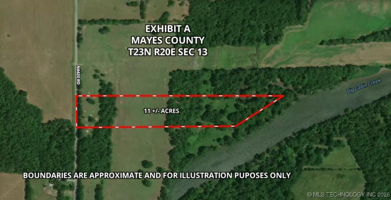 11+/- ACRES ALONG BIG CABIN CREEK - VINITA, OK Located just outside Vinita, this 11+/- acre property offers a versatile opportunity for farming, livestock, or recreation. The land runs along Big Cabin Creek, providing a scenic backdrop and potential water access. With a mix of open pasture and tree cover, it's well suited for a variety of uses. Enjoy wide open views perfect for taking in Oklahoma's beautiful sunrises and sunsets. Access is easy with paved road frontage, and the property's size and setting make it ideal for those looking to enjoy country living while staying close to town conveniences.