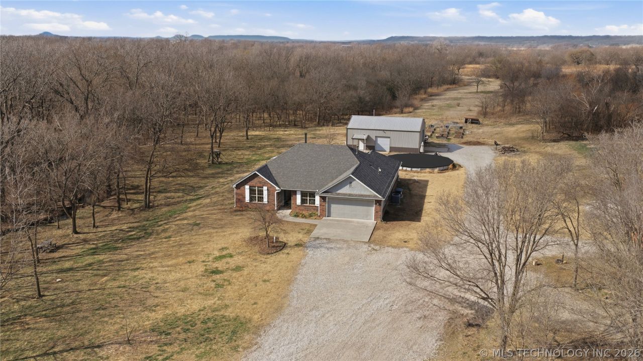Beautiful 3-bedroom, 2-bathroom home on 40 acres located approximately 17 minutes from Claremore in Northeast Oklahoma, offering a peaceful setting with easy access to town. The property features a remodeled kitchen (2024), a whole-house generator, and thoughtfully developed land designed for both productivity and recreation. The 20x30 barn built in 2023 has a concrete floor. 30X40 shop with concrete flooring has a full bathroom, electricity, outlets, lighting, a workbench, a 15-foot overhead door, a 10-foot overhead door, and a walkthrough door. The 32-foot above-ground pool with a Maytronics pool sweep is 2 feet in the ground, surrounded by landscaping and a paver patio. RV parking space. 12X16 storage shed. Outdoor highlights include an irrigated multi-variety orchard, an irrigated raised-bed garden, established food plots, two permanent hunting stands, and XUV trails throughout the property. The land showcases diverse terrain with rolling hills and open fields, a scenic creek lined with mature pecan trees, walnut trees, persimmon trees, and redbuds, along with two ponds that enhance both the beauty and usability of the acreage. Located just minutes from multiple public access points to Lake Oologah, you'll enjoy convenient opportunities for boating, fishing, and outdoor recreation. This property offers a rare combination of comfortable living and well-planned land features, ideal for gardening, hunting, and enjoying the outdoors.