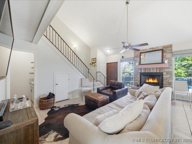 Spinnaker Point lake view condo with 3 bedrooms, 2 bath and two large decks. Granite in kitchen, and bathrooms, and a beautiful refurbished stone fireplace. Laundry facilities in the condo, and a beautiful wet bar below the staircase! A very nice view, and good proximity to the docks. An hour and ten minutes from Tulsa, and ten minutes from Reasor's. A phenomenal view of the 4th Fireworks. The sellers graciously offered to leave their hydrohoist for anyone who already owns a boat.