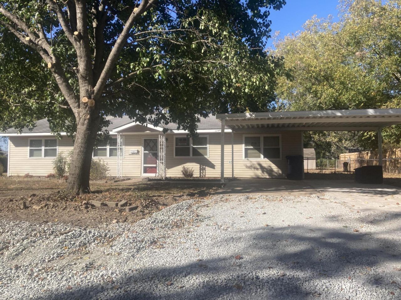 Cute 4 bedroom, 2 bath home sitting on 4 fenced lots! There is a large 2 car carport, storage building for all your extras, and a covered patio. This home is all one level with no steps! Call today to go take a look!
